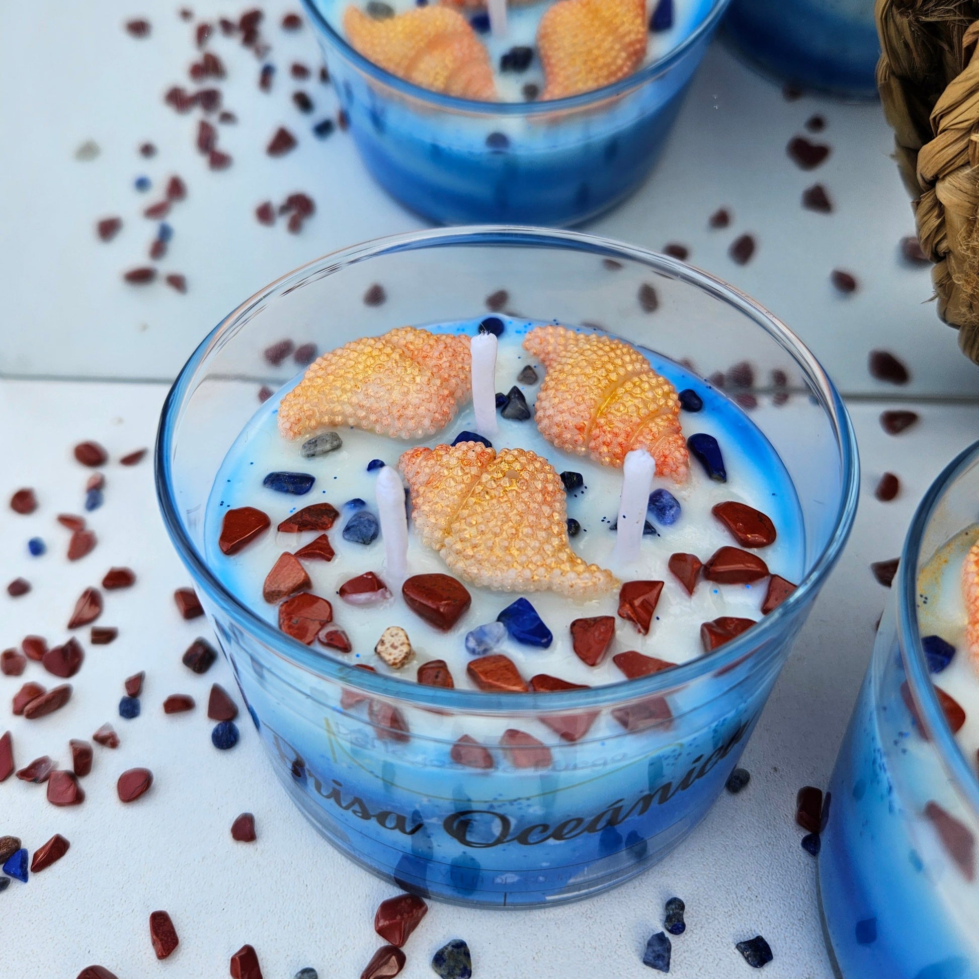 Cera de soja 100% natural, vegana y cruelty free, esencias aromáticas sin parabenos y mechas de algodón.