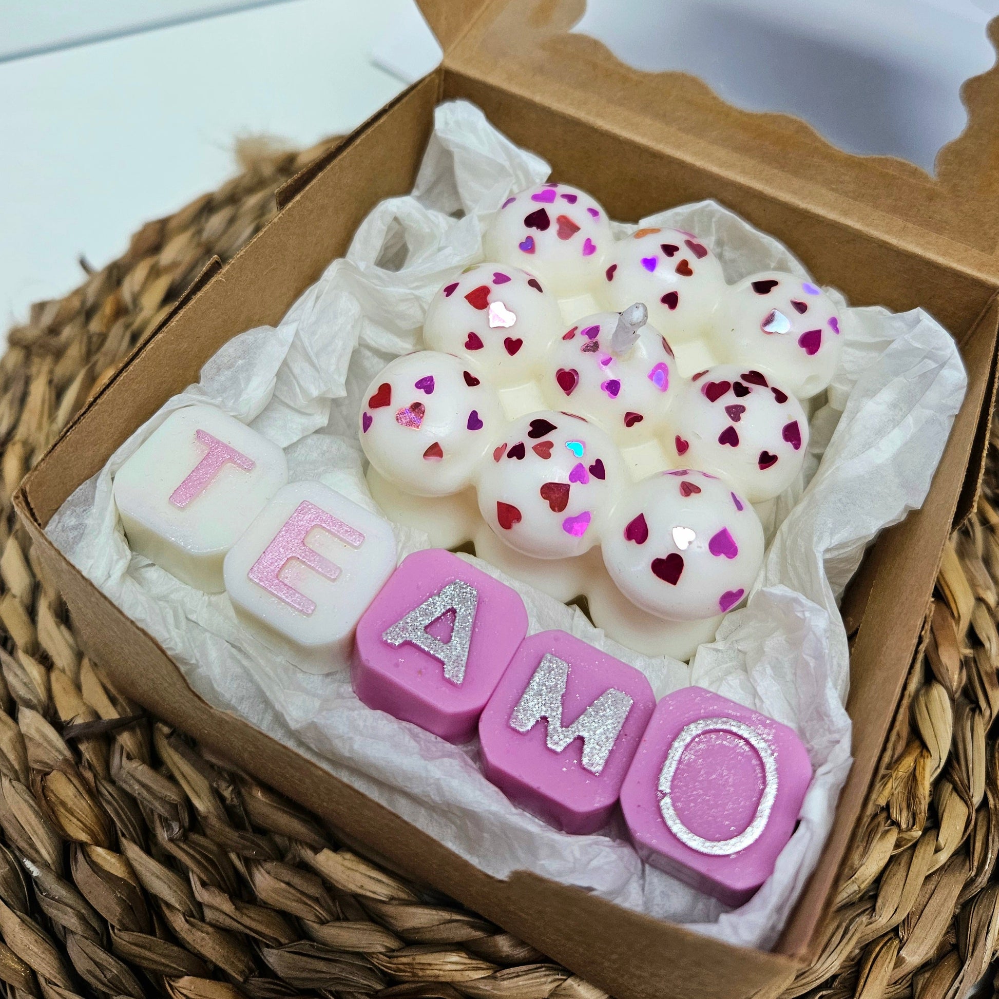 Wax melts 'TE AMO' con esencia fresca y jugosa de frutas silvestres. Con notas sutiles de fresas, frambuesas y arándanos. (20g).