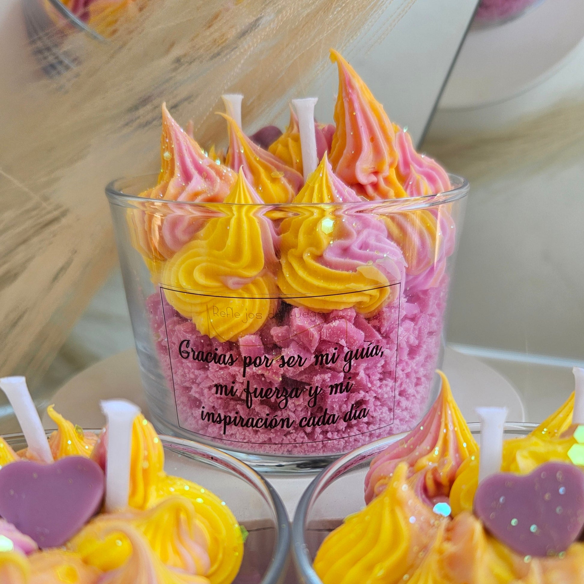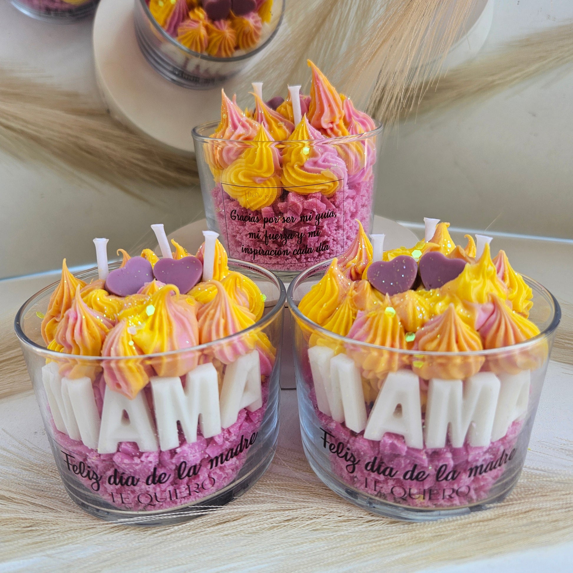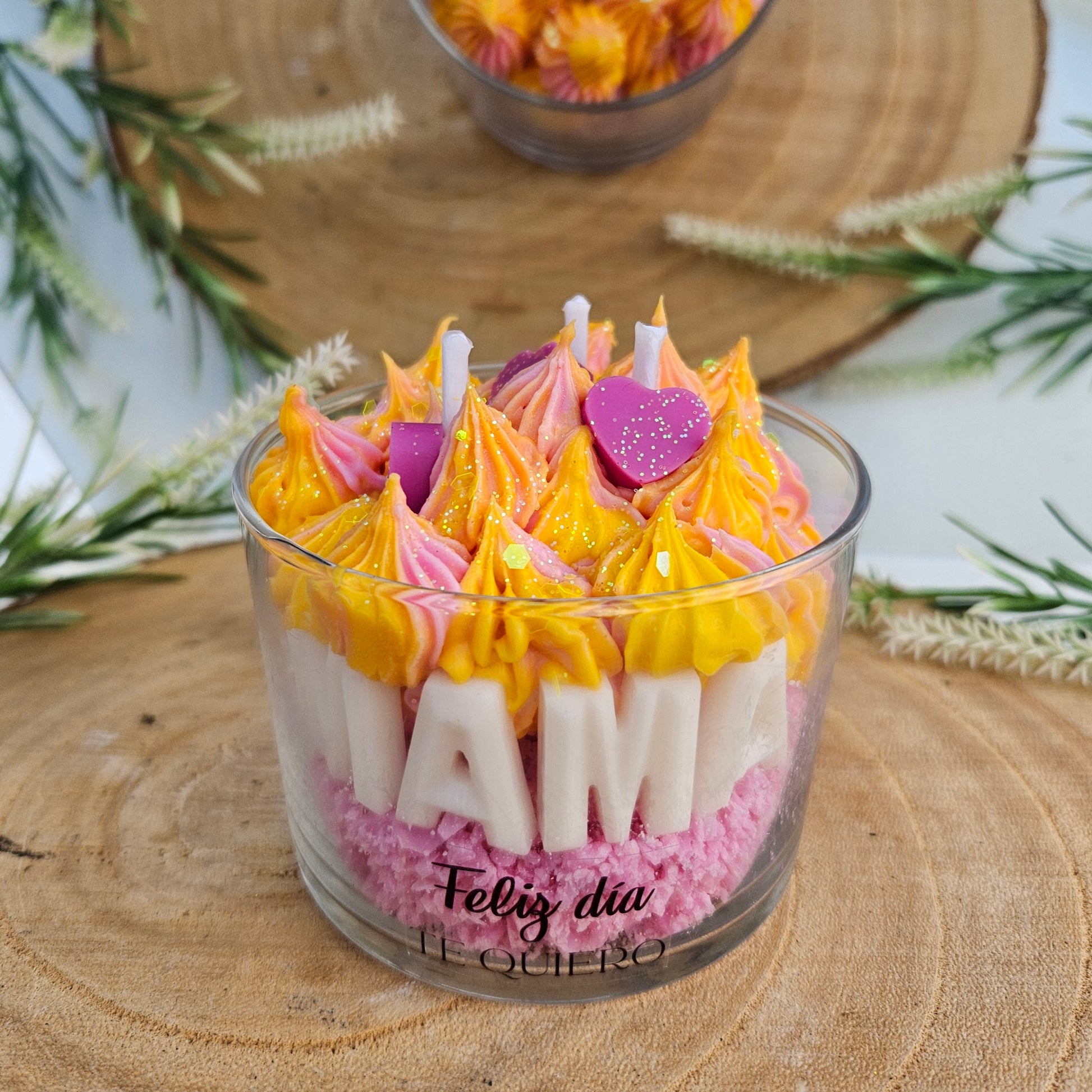 Personaliza la frase delantera (Feliz día, Feliz cumpleaños, Feliz día de la madre...) y la frase posterior añadiendo tu dedicatoria en las notas al finalizar el pedido.